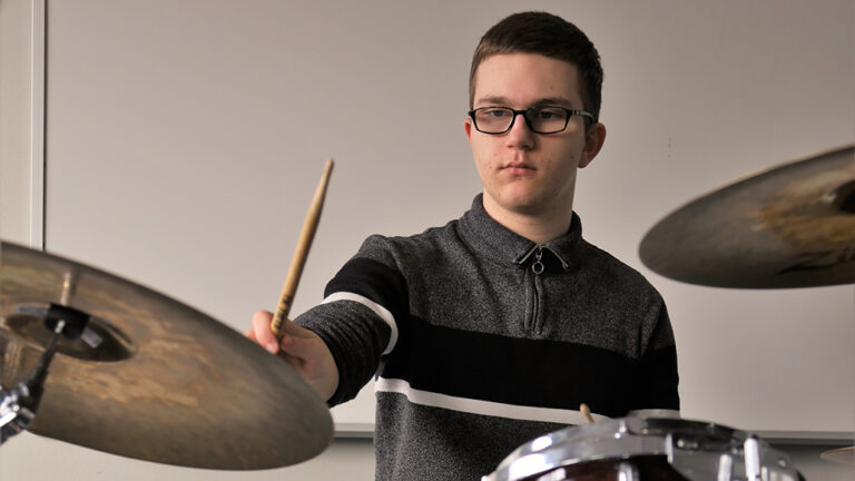 Ole André Veen Mecea (17) har eit kombinert syns- og høyrselstap. Det hindrar han ikkje i å realisere draumen om å bli trommeslagar. På musikklinja på Vågen vidaregåande skole i Sandnes er den ambisiøse guten ein stor ressurs.